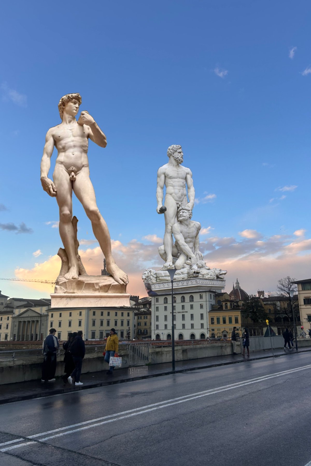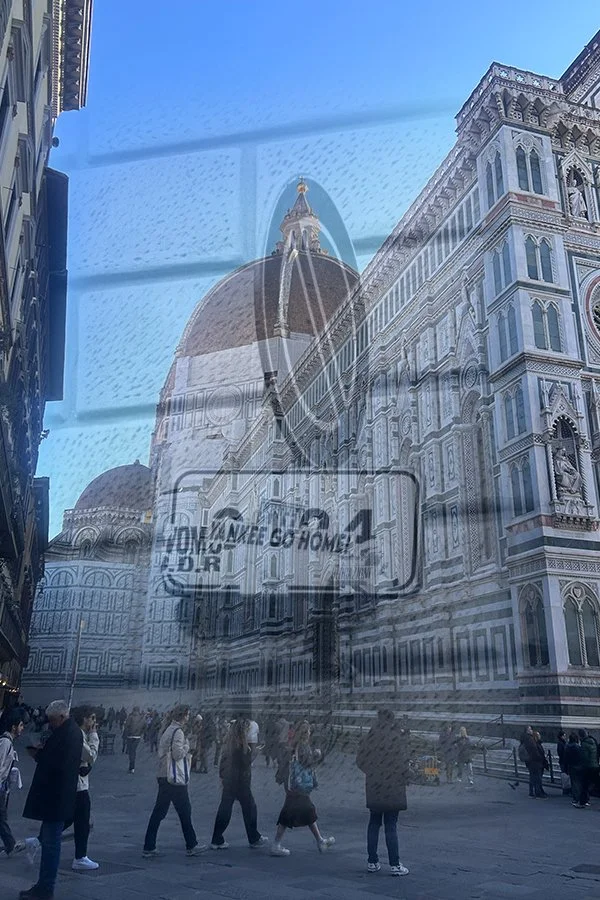 My diptychs explore Florence through layered photography, combining my own images with found photos to highlight contrasts in time, movement, and perspective. They examine the city’s shifting atmospheres, from rain and sunlight to the tension between fast-paced modern life and historical spaces. Some pieces reinterpret iconic landmarks or Renaissance artwork, questioning tourism’s impact, reimagining historical symbols, and revealing how past and present coexist in the city’s everyday rhythms.