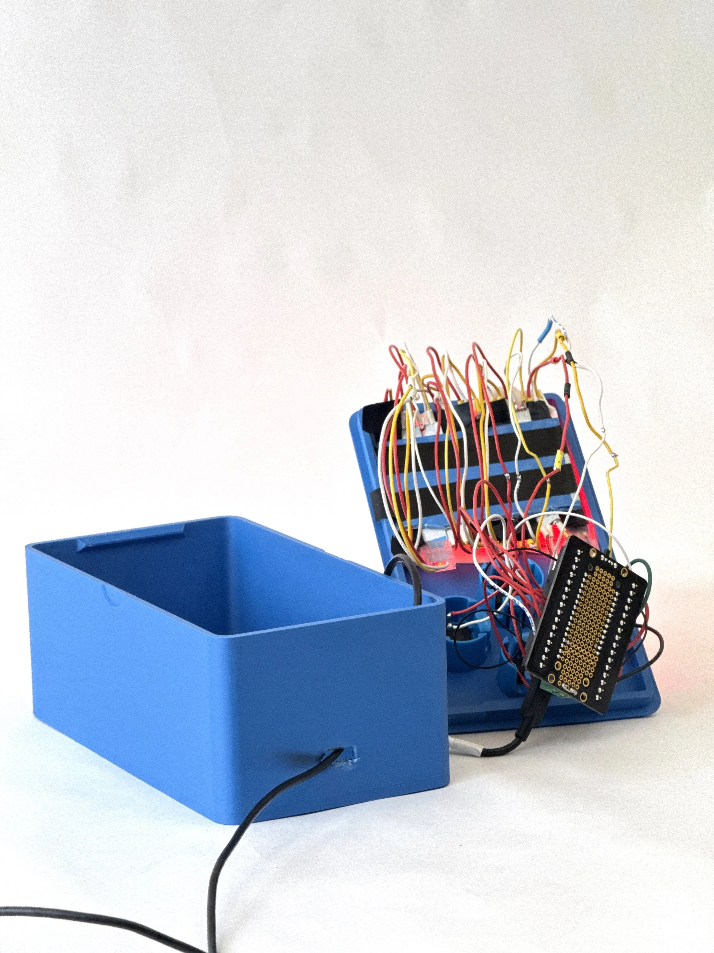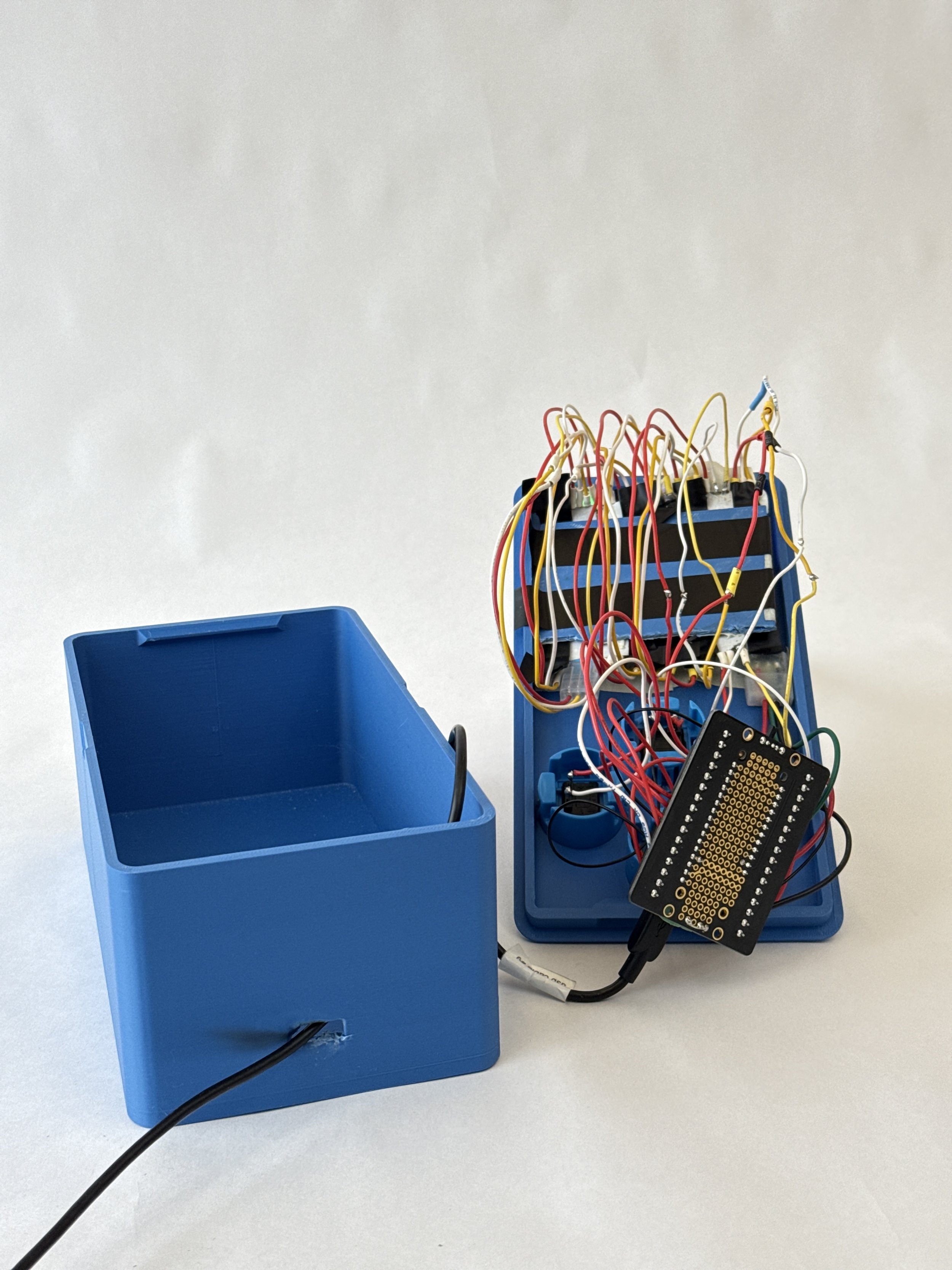 I also designed and 3D printed a custom enclosure tailored to the exact dimensions of the LED matrix and control buttons. The case features a secure snap-fit design that minimizes internal movement and protects the wiring while remaining accessible for adjustments.